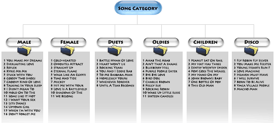 To illustrate the concept of single-level hierarchy, let’s take a look at an example of one's song categorization (Left-hand Diagram below):